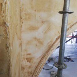 Les nombreuses campagnes de peinture de l’intérieur de l’église, ont recouvert différents fonds, comme les plâtres, les enduits et les pierres. La remise en état d’origine et la volonté de Monsieur MAUDUIT architecte, de conserver le plâtre d’origine, induit une solution technique par un décapage chimique au lieu d’un piochage de ces derniers. Suite aux différents tests réalisés par notre technico-commercial Monsieur Cyrille MASSON, l’entreprise REMOVE a choisi d’effectuer un retrait chimique avec le décapant DETOX P82. En effet, il permet de retirer toutes les couches de peinture en une seule passe de décapant. DETOX P82 étant en phase aqueuse, une ré-humectage à l’eau est possible si le décapant a séché et évite ainsi la diffusion de poussières de plomb dans la zone, ainsi que la diffusion d’odeurs nauséabondes voire dangereuses d’un produit type solvanté volatile. DETOX P82 est par ailleurs ininflammable et sans rinçage.