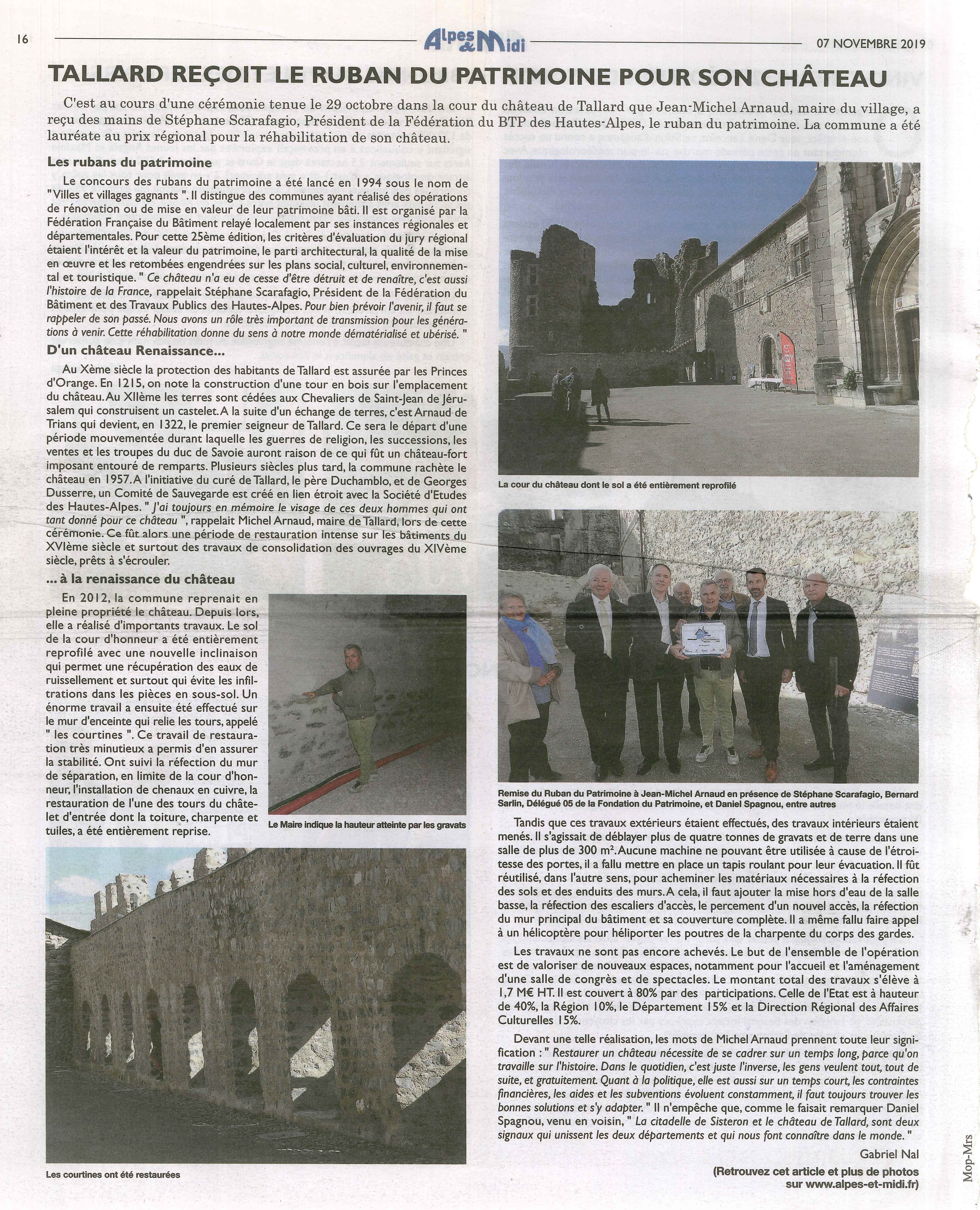 Le chantier de Tallard reçoit le ruban du patrimoine.