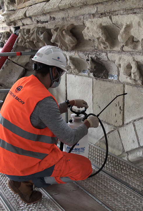 Le procédé Biocalcis© Patrimoine a été développé en 2020 pour des applications de restauration de la pierre, en adaptant la formulation d’origine destinée aux applications de traitement des sols à grande profondeur.