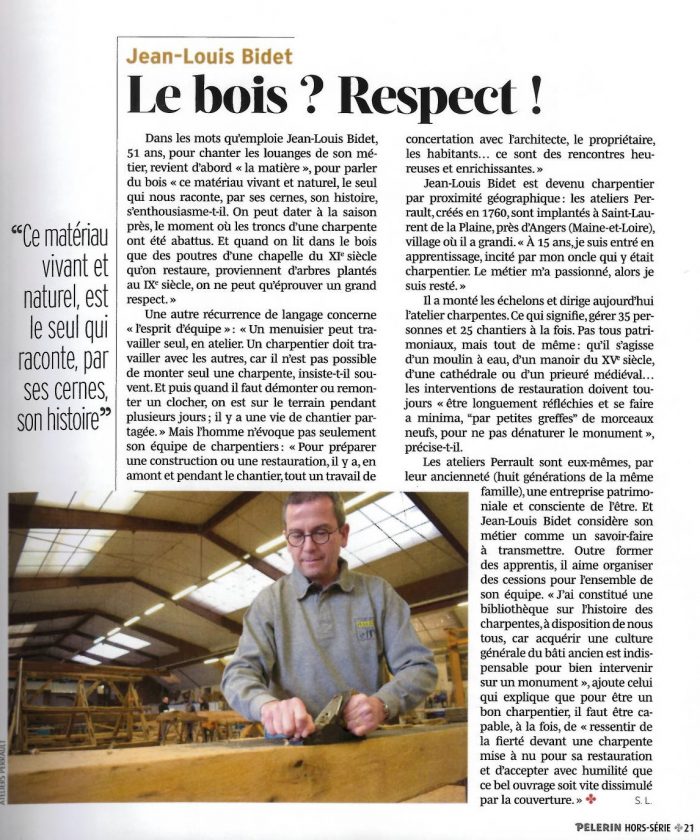 Article Pelerin hors-série : Jean-Louis Bidet – « Le bois ? Respect !