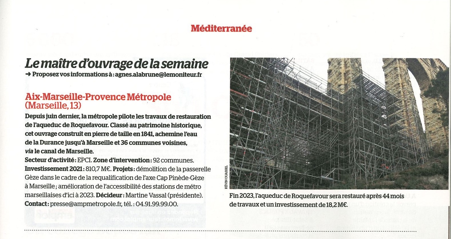 Publication Le Moniteur : La restauration de l'aqueduc de Roquefavour