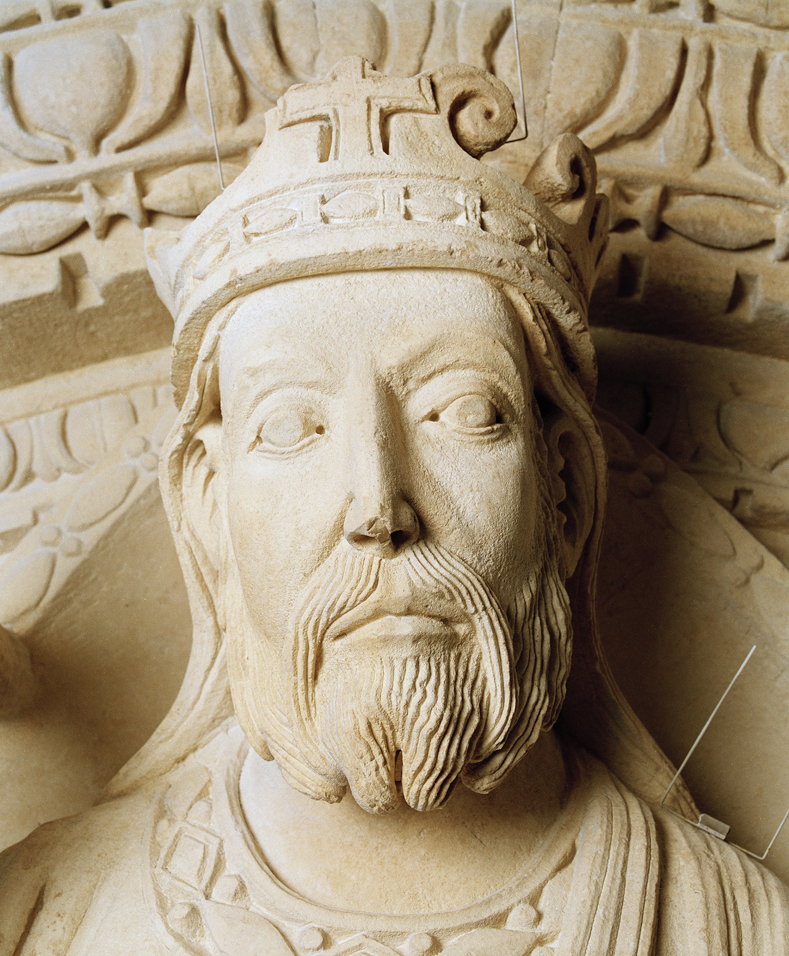 Le coq, deux statues et la tête d’Eugène-Emmanuel Viollet-le-Duc provenant de la cathédrale …