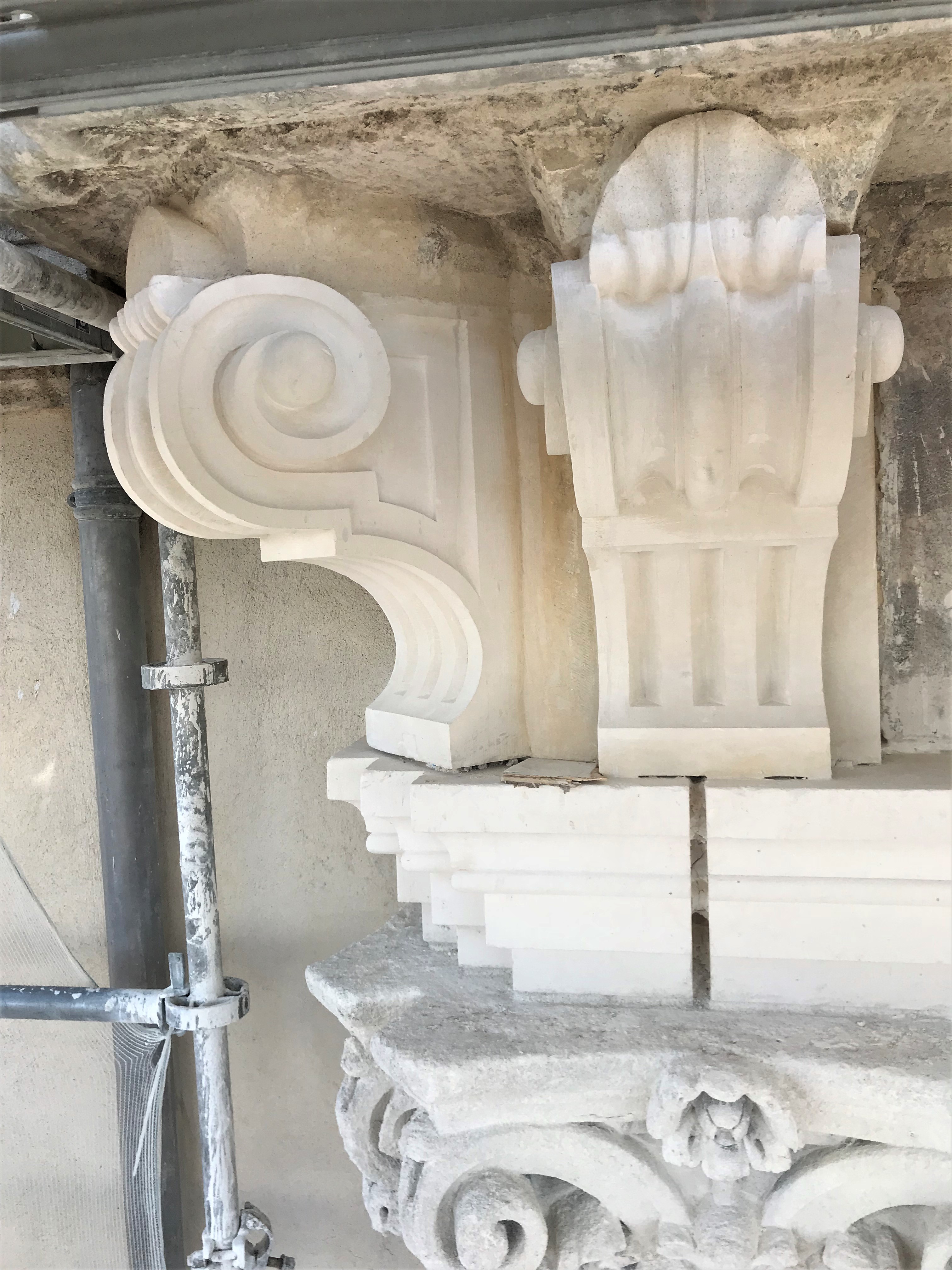 Restauration des décors formant l’acrotère d’habillage des jouées de chéneaux de la Mairie de Montrouge avec la gamme Ymaiges de la société (…)