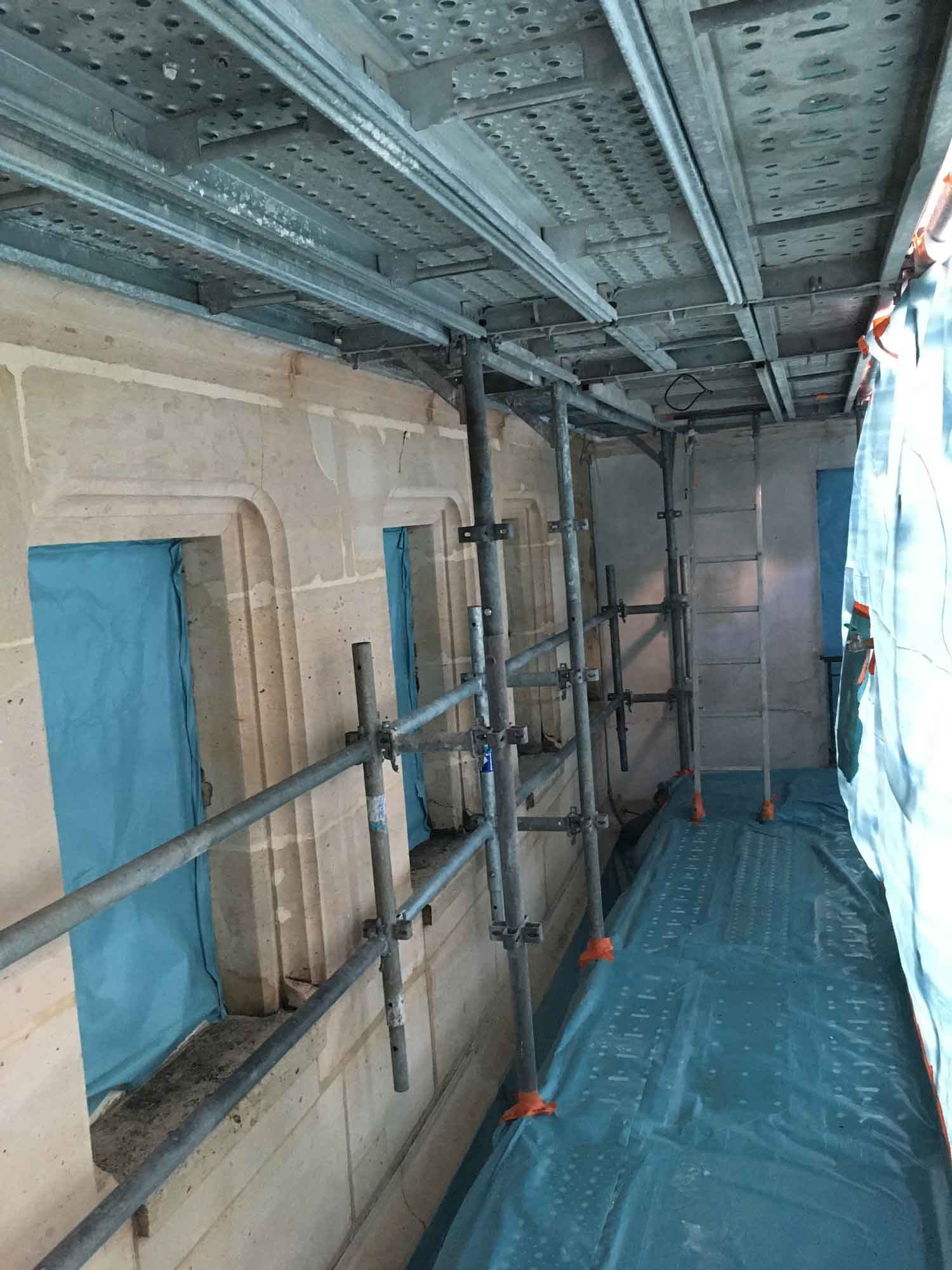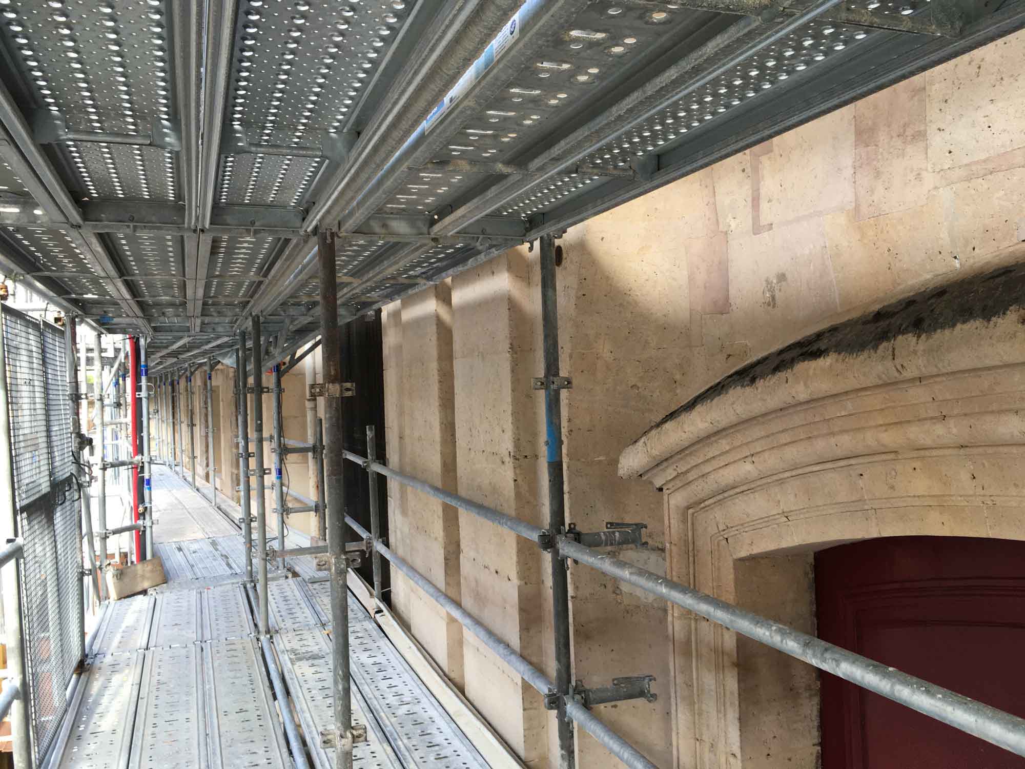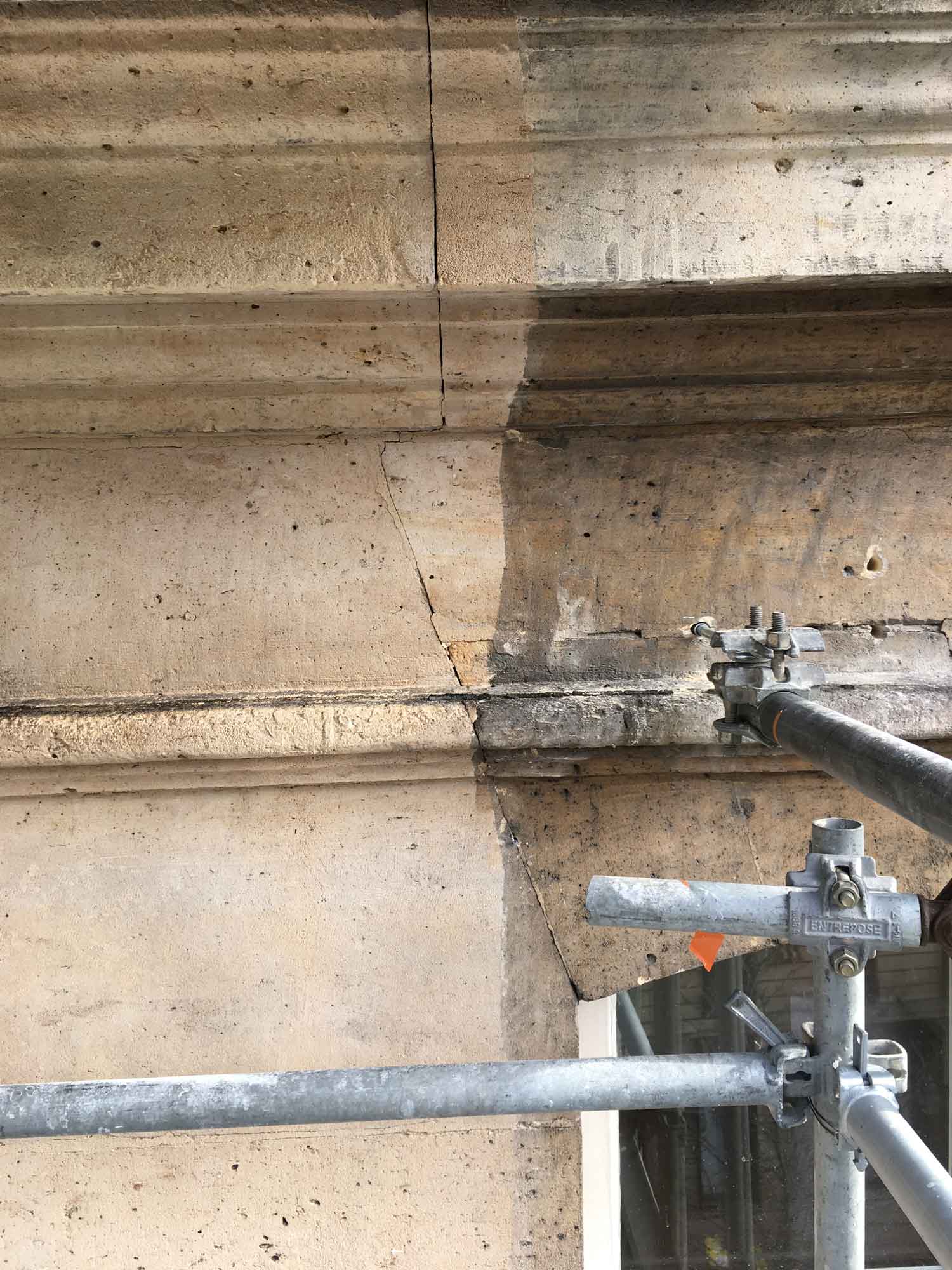 Exemple illustré par le retrait de plomb surfacique et le nettoyage en une action d’une façade en pierres sur la région parisienne. Travaux effectués par l’entreprise PRONETEC.