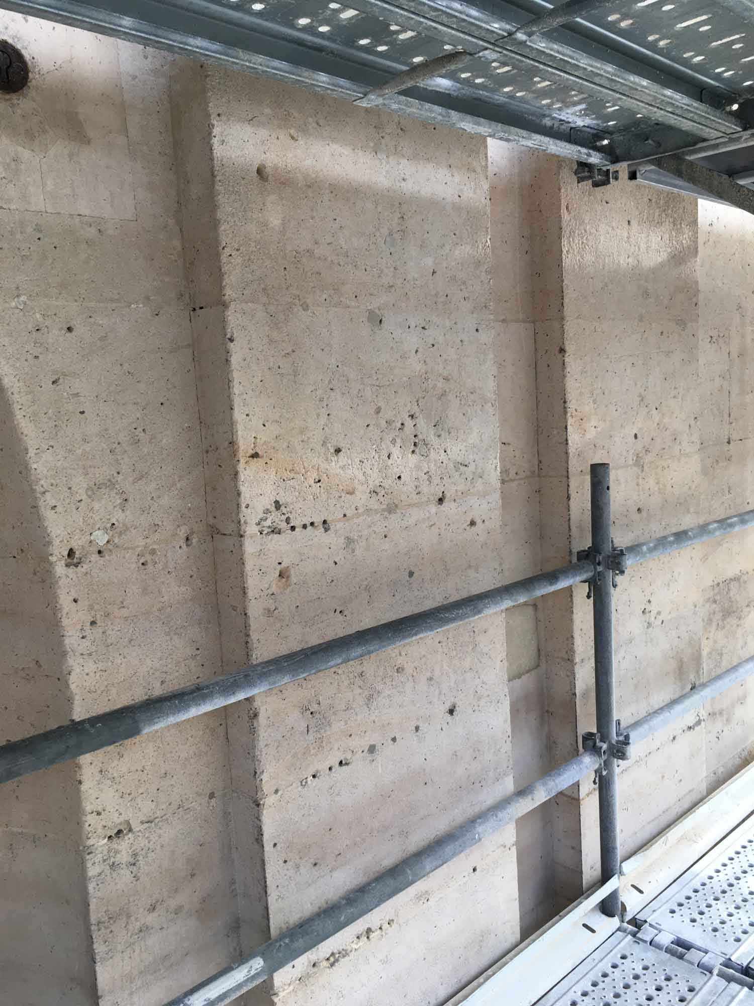 Exemple illustré par le retrait de plomb surfacique et le nettoyage en une action d’une façade en pierres sur la région parisienne. Travaux effectués par l’entreprise PRONETEC.