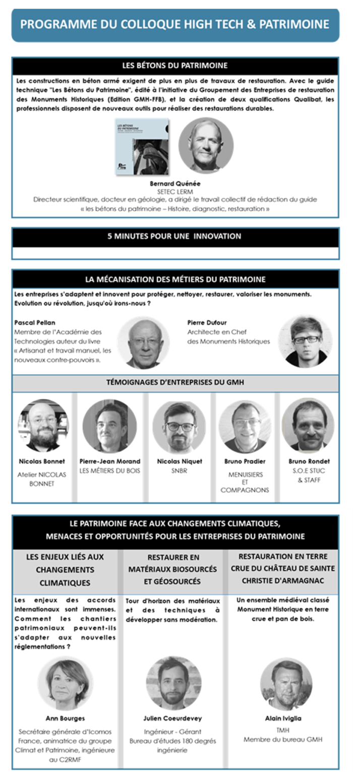 Le Groupement des Entreprises de Restauration de Monuments Historiques (GMH) a le plaisir de vous convier à son 6ème colloque HIGH TECH & PATRIMOINE.