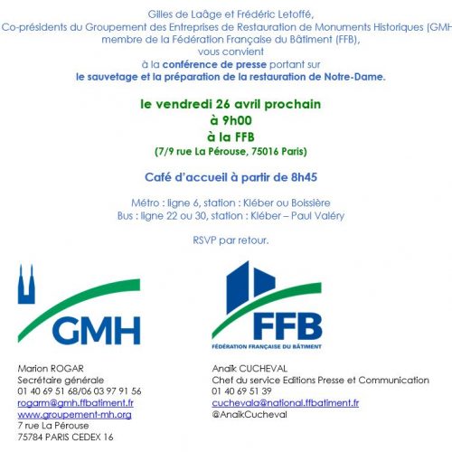 Le 2 juillet, le GMH et la FFB vous invitent à un événement exceptionnel dédié à la restauration de Notre-Dame de Paris. Venez rencontrer le (…)