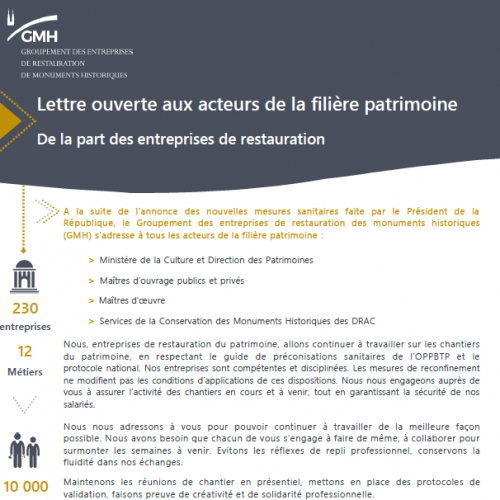 Lettre ouverte aux acteurs de la filière patrimoine. De la part des entreprises de restauration.