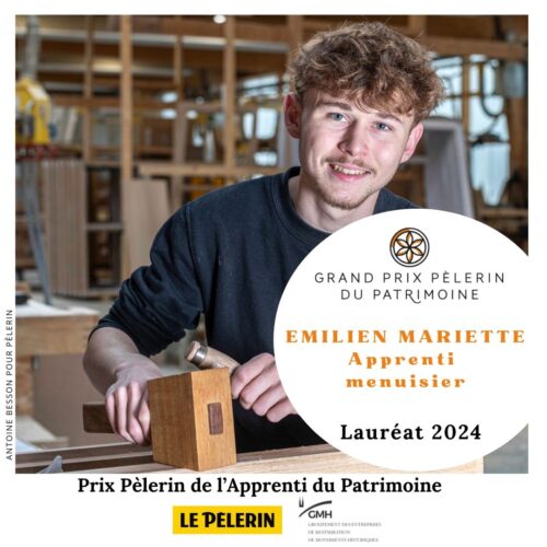 Félicitations à Émilien Mariette, lauréat du Prix de l’Apprenti du Patrimoine dans le cadre du Grand Prix Pèlerin du Patrimoine 2024