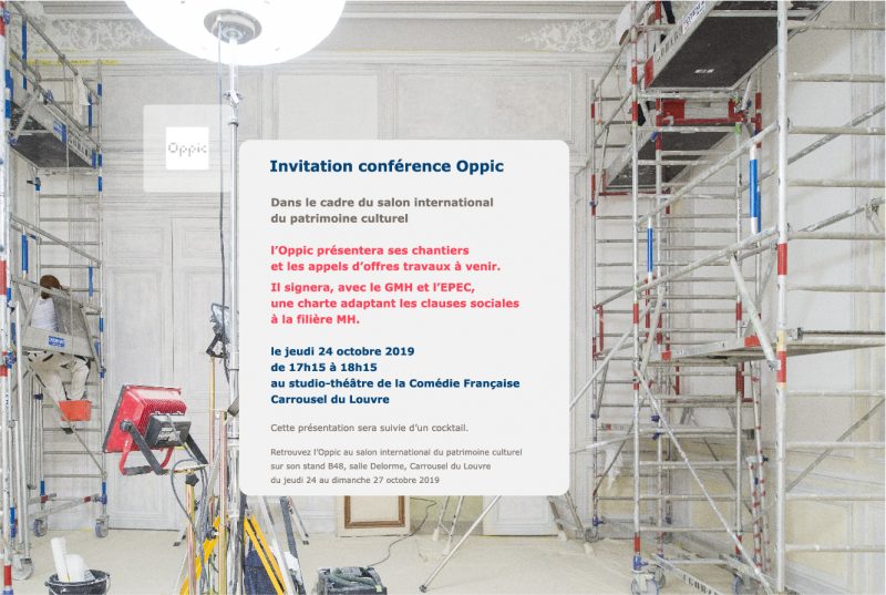 Cette présentation sera suivie de la signature d’une charte tripartite entre l’Oppic, l’Etablissement Public Emploi Compétences (EPEC) et le GMH (Groupement des entreprises de restauration de Monuments Historiques) visant à adapter les clauses d’insertion sociale des marchés publics à la réalité des entreprises de la filière.
