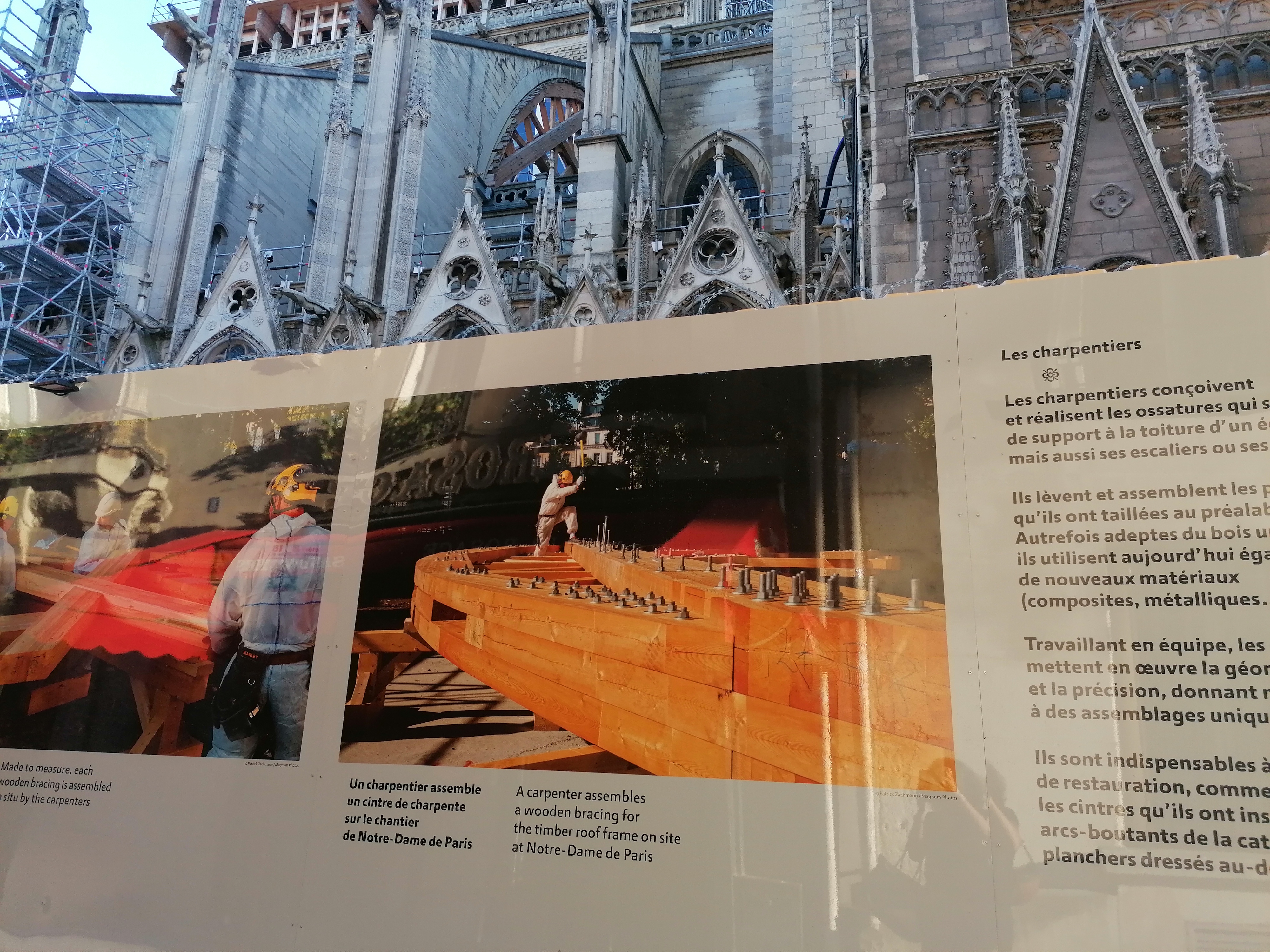 Une exposition met à l’honneur les ouvriers du chantier de Notre Dame de Paris. Un parcours de 32 photographies accrochées sur les palissades de la cathédrale présente les métiers : cordistes, charpentiers, échafaudeurs, grutiers, maçons et tailleurs de pierre. L’exposition rend hommage à tous ces métiers à travers les clichés de Patrick Zachmann, photojournaliste de l’agence Magnum Photos, présent sur le chantier depuis avril 2019.