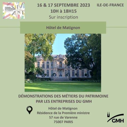 Le GMH et la FFB seront présents au salon du patrimoine du 27 au 30 octobre 2022, salle Soufflot, stand F3. 50 entreprises du GMH seront (…)