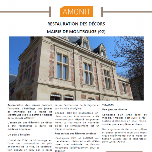 Restauration des décors formant l’acrotère d’habillage des jouées de chéneaux de la Mairie de Montrouge avec la gamme Ymaiges de la société (…)