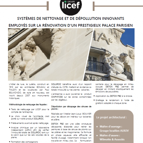 Le GROUPE LICEF conçoit, fabrique et prescrit ses systèmes de préparation, de dépollution et de sublimation de surfaces grâce à une chimie innovante, respectueuse des matériaux, de l’environnement et des hommes pour le bâtiment.